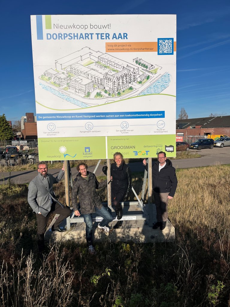 Voor het project Dorpshart Ter Aar plaatsten wij op 4 december een bouwbord. Het bord staat bij de rotonde tussen de Westkanaalweg en de Aardamseweg. Op het bord ziet u de plannen voor de ontwikkeling van het Dorpshart. De eerste fase is dat we starten met de Vlinderlocatie en het Stationsgebouw.