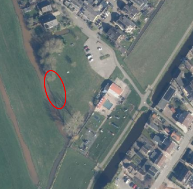 - Bij de groenstrook aan het einde van de Fleurstraat/achter het Zuideinde, op het gedeelte dat grenst aan het weiland.